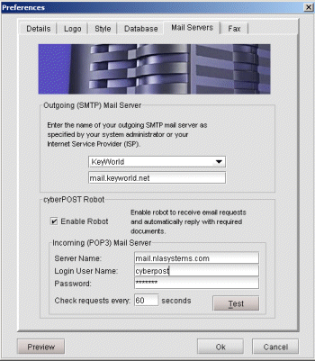 For security reasons, certain database drivers require a login name and password to log into their database. Enter your database login name and password here to enable cyberPOST to gain access to it.